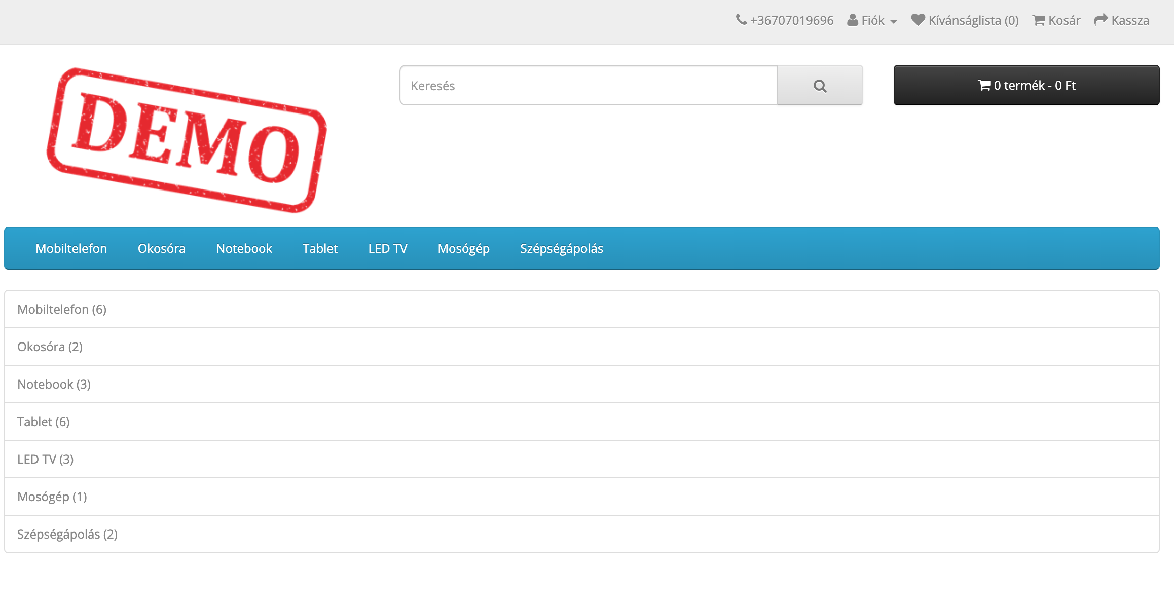 DEMO webáruházunkban végig tudja nézni a teljes folyamatot a termékoldaltól egyészen a rendelés leadásáig.